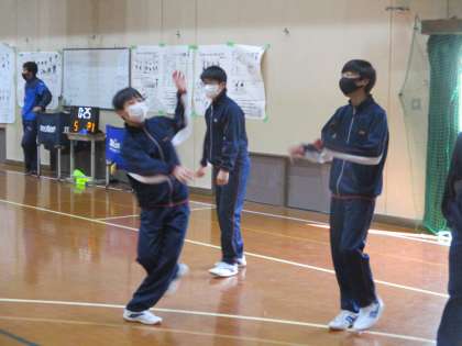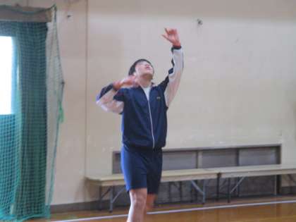 グランドが使えなったので男女とも講堂でバレーボールを行いました。