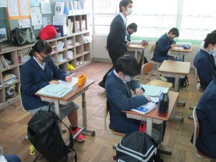 5組は社会科,3組は数学です。5組は交流授業を一旦終えて自教室に帰って来ました。これで安心している人,もっと交流をしたい人,それぞれだと思いますね。