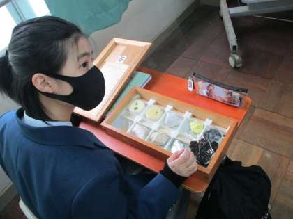 今日は鉱物の観察実験です。