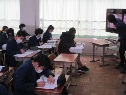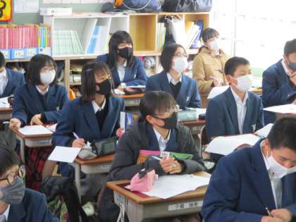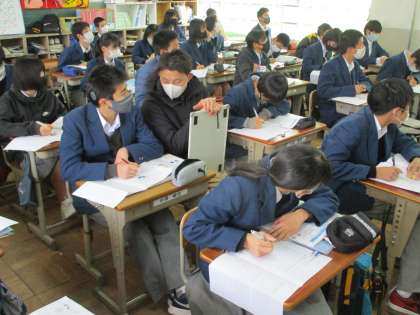 3組は理科,2年ではまだ5組(難聴学級)の生徒の交流が継続されています。