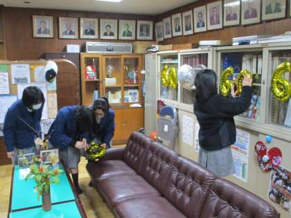 ※セレモニーの後,バルーンをもっていた子たちが校長室のデコレーションまでしてくれました。