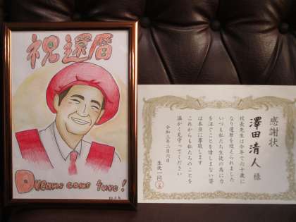 みんな,それでなくても忙しいのに,色々な準備やプレゼントまでしてくれて,本当に有難う。先生をしてきて良かったです。感激してスピーチの最中に泣きそうでした。