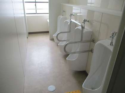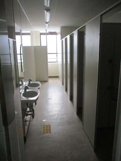 土曜も日曜もなく工事に来てくださっています。許可を得て中を少し見せてもらいました。生徒や教職員の皆さんには長く不自由な思いをさせてきましたが,もう少しで快適なトイレと体育館とを使用することが出来そうです。