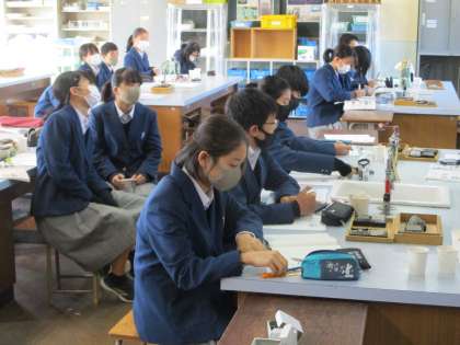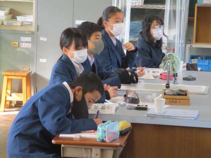 1組は理科。火成岩についての学習です。なかなか興味深い内容でした。