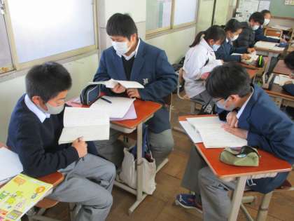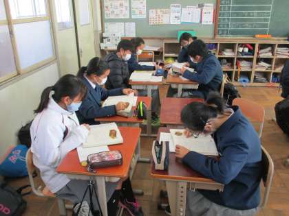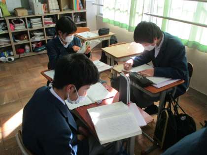 2組は国語。「少年の日の思い出」を今日は自分たちで朗読しています。それをグループごとに聞き合っています。よい取り組みです。