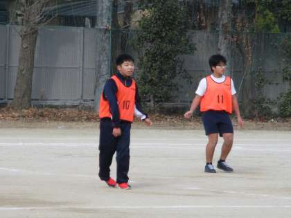 3・5組は人数が少ないのでサッカーのピッチを走り回ることになります。授業が終わると,おそらくヘトヘトでしょう。
