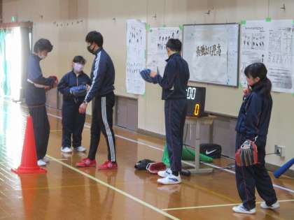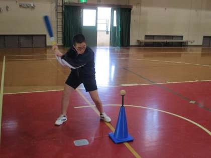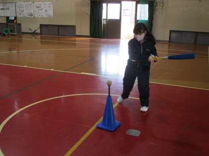 6組は体育です。簡易なソフトボールです。