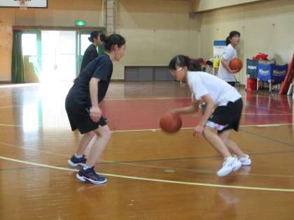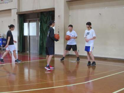 講堂では女子バスケットボール部が頑張っています。