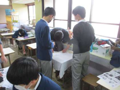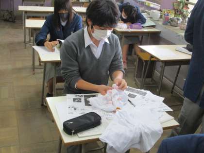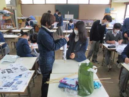 この絞りの段階が面白いです。さて,どんな具合に染め上がるのでしょうか。楽しみですね。