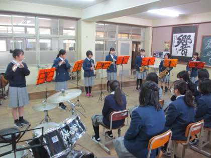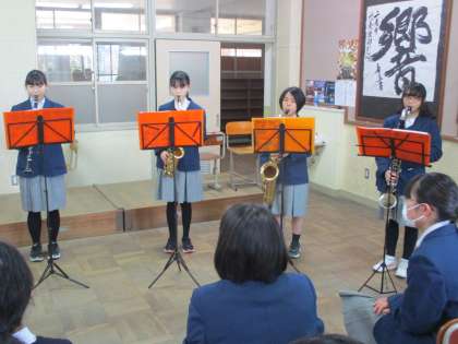 吹奏楽部のアンサンブルミニコンサートが始まりました。