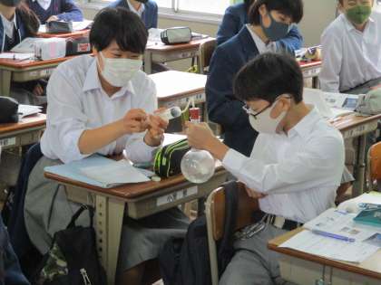 雲のでき方を実験を通じて学んでいます。