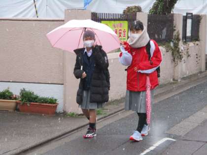 雪降りの朝となりました。私の出かけ時には「雪かな…」くらいの降りでしたが,生徒たちの登校時間帯には結構な降りになってしまいました。