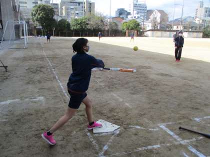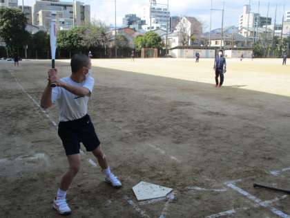 ソフトボールですが,ボールの来ない人は,寒さで震えていました。