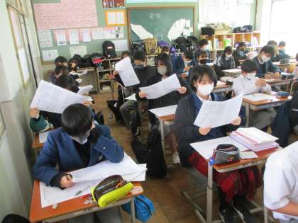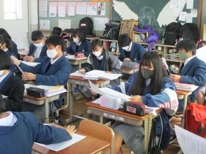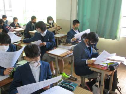 2年1組は国語です。高校の入試問題に取り組んでいました。