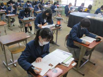 テスト範囲まで終了しているのか,私が訪れた時には学年末テストに向けて,自習に取り組んでいました。