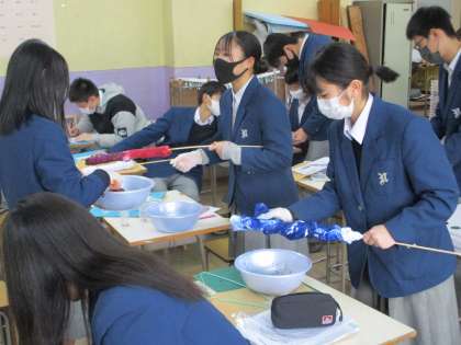 思い思いに染めていきますが,どういう具合に仕上がるのか分からないところもあります。それが楽しみでもあるのですが…。