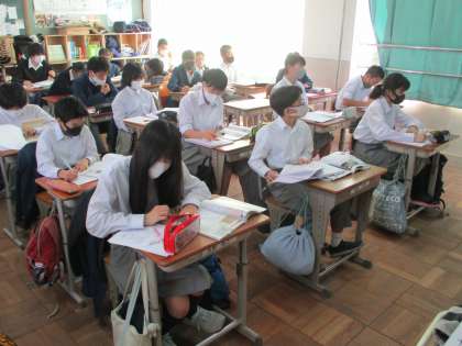 1組は,個御前の授業が体育で,みんなが上着を脱いで学習していました。