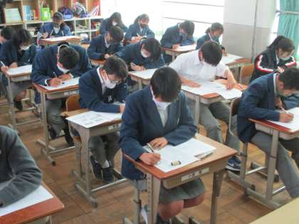 生徒数の多い2年の教室は,やっぱりぎゅうぎゅう詰めに感じます。因みに,この学年は3年になったら4クラスになる予定です。