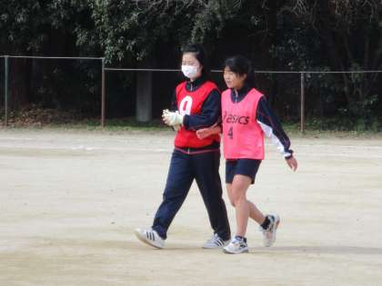 女子はグランドでサッカーですが,これはこの時期の女子にはちょっと広すぎますかね。かなり疲れているようです。