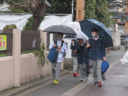 そして,朝から…雨。やや憂鬱な気分ですが,生徒たちはいつもと変わらず元気に登校してきました。