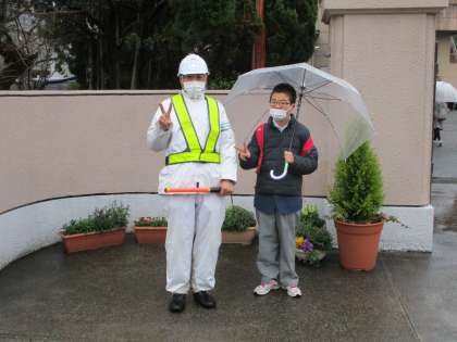 毎朝一緒に写真を撮ってくださったガードマンさんも今日が最終日だそうです。うちの生徒もそのことを伝えられていたようで,「おっちゃんに手紙を書いた」と言っていました。