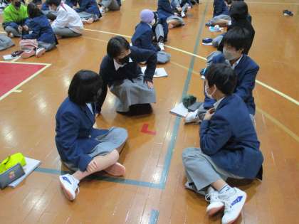先生の問に対して,まずは自分で考えてからグループで交流です。