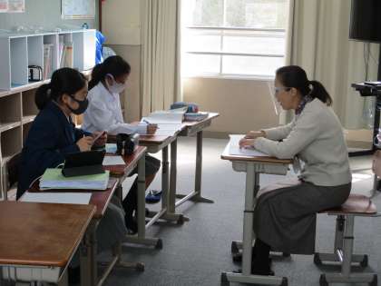 5組は英語です。こちらもテストの解説ですね。人数が少ないのは,4人のうち2人が通常学級へ交流に行っているからです。