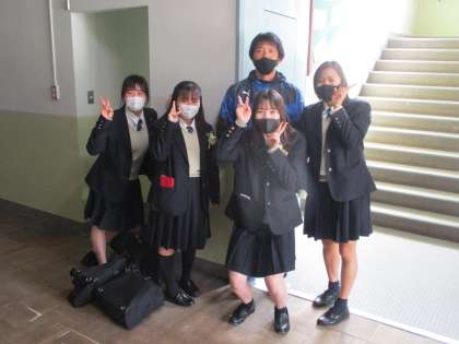 式を終えた高校生が帰りに本校に寄りました。この中にはオリンピックの候補選手もいるようです。