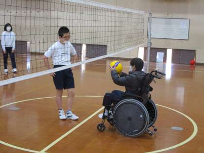 6組はこの時間,他校の育成学級の生徒と交流していました。一緒にバレーボールを楽しみましたが,本当に楽しそうでした。