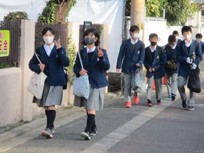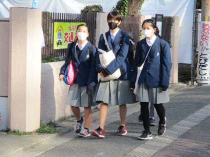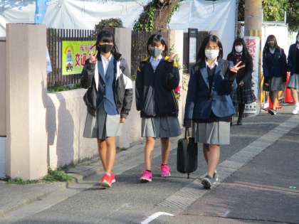 登校してきたメンバーの2人に声を掛けました。彼女たちもそれなりに気合を入れているようです。「校長先生,大丈夫です。きっとできますよ!」