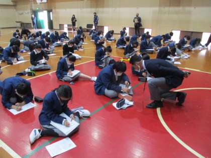 発問に対して,ワークシートに思いを綴ります。
