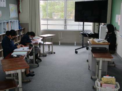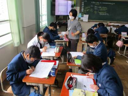 まずは5組の数学と3組の理科です。理科の授業では話合い活動が増えてきました。