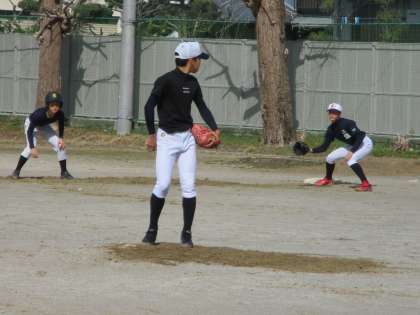 グランドの状態はよくないですが,野球部ができる内容を考えて練習に精を出しています。