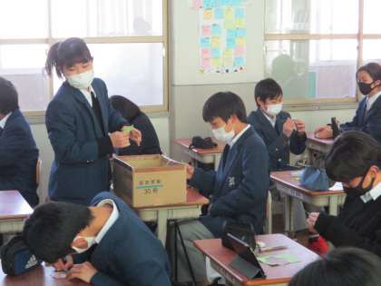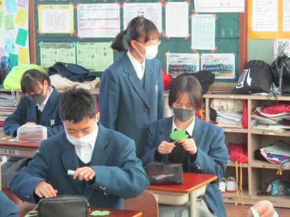 一言メッセージを制作しているようでした。誰に向けてのものでしょうか。クラスの仲間かな。