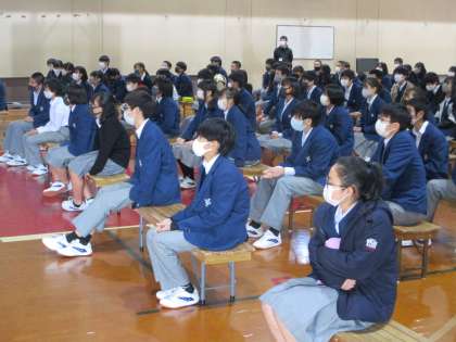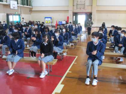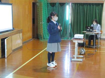話のおあと,先生に指名されて女子が感想を述べました。しっかりと話せましたね。