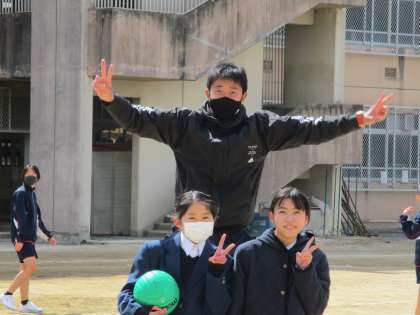 女の子たちが座っているわけじゃありません。彼がジャンプしているのです。アップにし過ぎて分からなくなってしまいました。