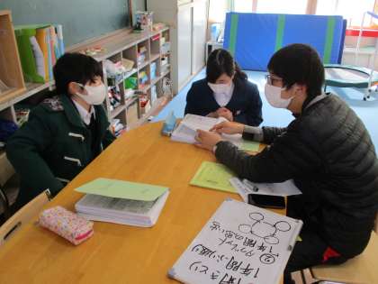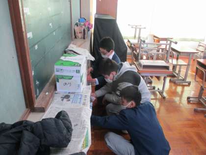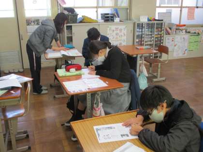 1・2年生は教室での学習,3年生は清掃活動を頑張っていました。