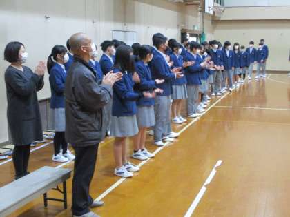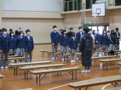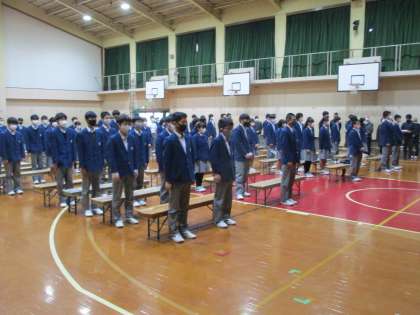 「蛍の光」静聴の後は,卒業生の退場です。本番は教職員の他,保護者の皆様方とご来賓の皆様方がおられるので大きな拍手になると思います。