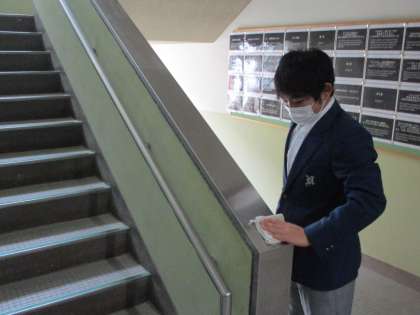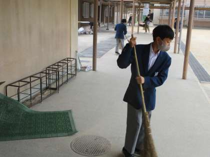 1年生が校舎周りの清掃を担当しています。
