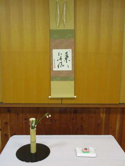 お軸は,「葉葉起清風」兵庫県龍野の寶輪寺 西村古珠師筆 です。