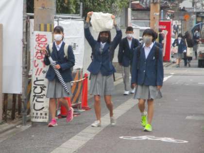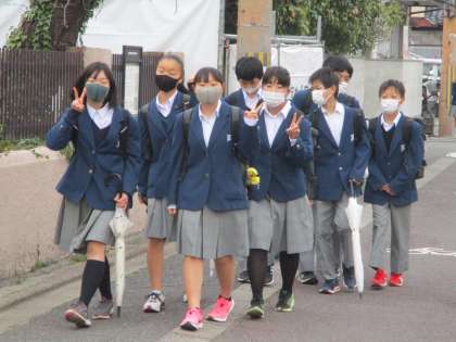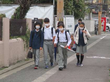 花山中学校,向島中学校,そして二条中学校の生徒の皆さんの登校する様子をカメラに収め,HPにアップしてきました。