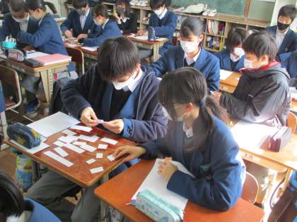 ペア学習です。中身は単語を連ねて正しい文章を作るというものです。さて,出来るでしょうか。知恵を出し合ってがんばれ!