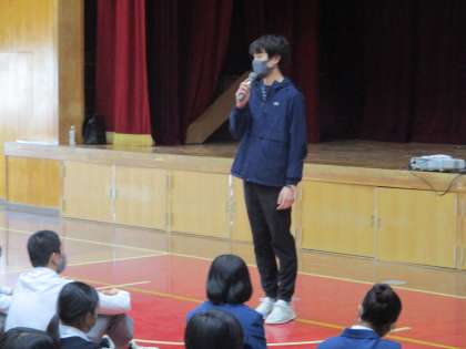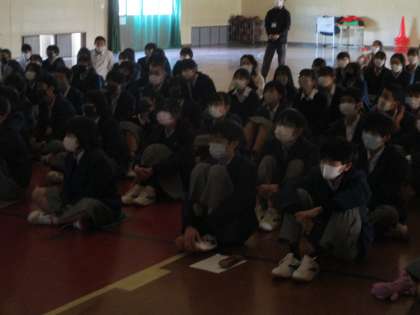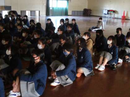 先生から学習についての話が合った後,思い出ビデオの上映です。