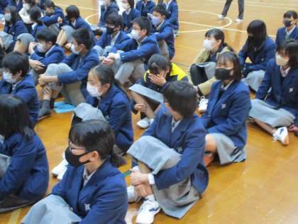 涙を浮かべている生徒も少なくありませんでした。この集会は,生徒の心を耕す教育の場にもなっています。