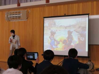 昨日の学年集会で,修学旅行の行先である「長野県」についての説明がありました。行程には,普段,京都の町中に住んでいるみんなが触れる機会の少ない“山”や“川”で体験するプログラムがたくさんあります。