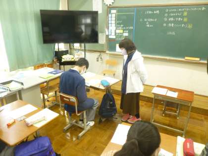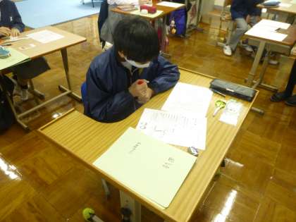 6組の授業は,自己紹介のプリントを作成中です。