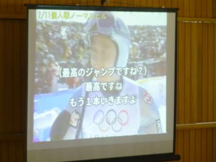 5月の信州への修学旅行事も考え,「スキージャンプの原田選手」の映像資料を使いました。