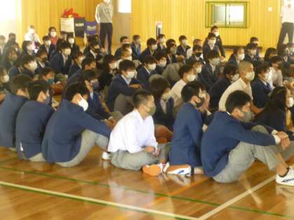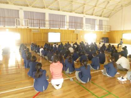 今日の3年生の道徳は,体育館での学年道徳でした。