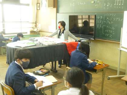 1年3組は音楽の授業です。