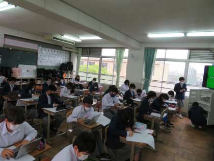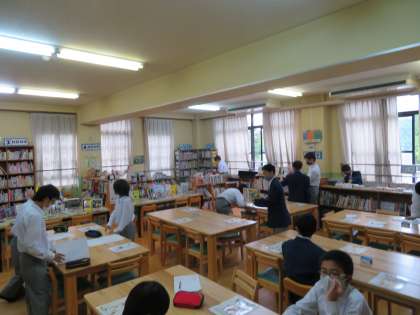 1年生は5,6限を使って自分の好きな物やおすすめのものを紹介するポスター作りに取り組みました。タブレットや図書館も利用しながら必要な情報を1枚のポスターにまとめます。
